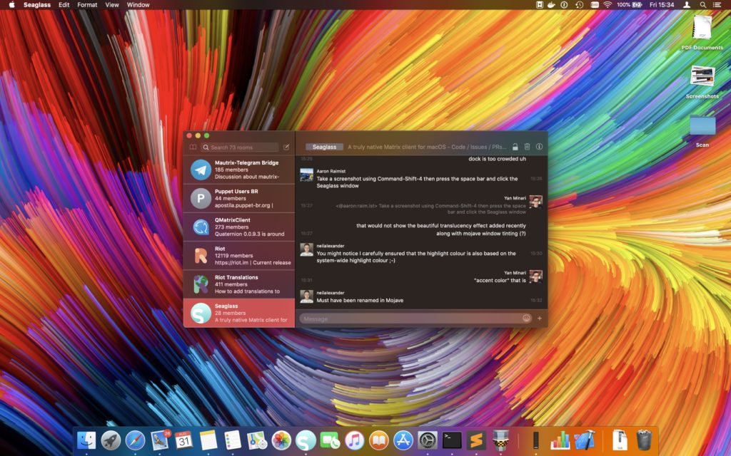 There's also been some work on supporting dark mode on Mojave (which looks particularly sexy) and even Touch Bar support!