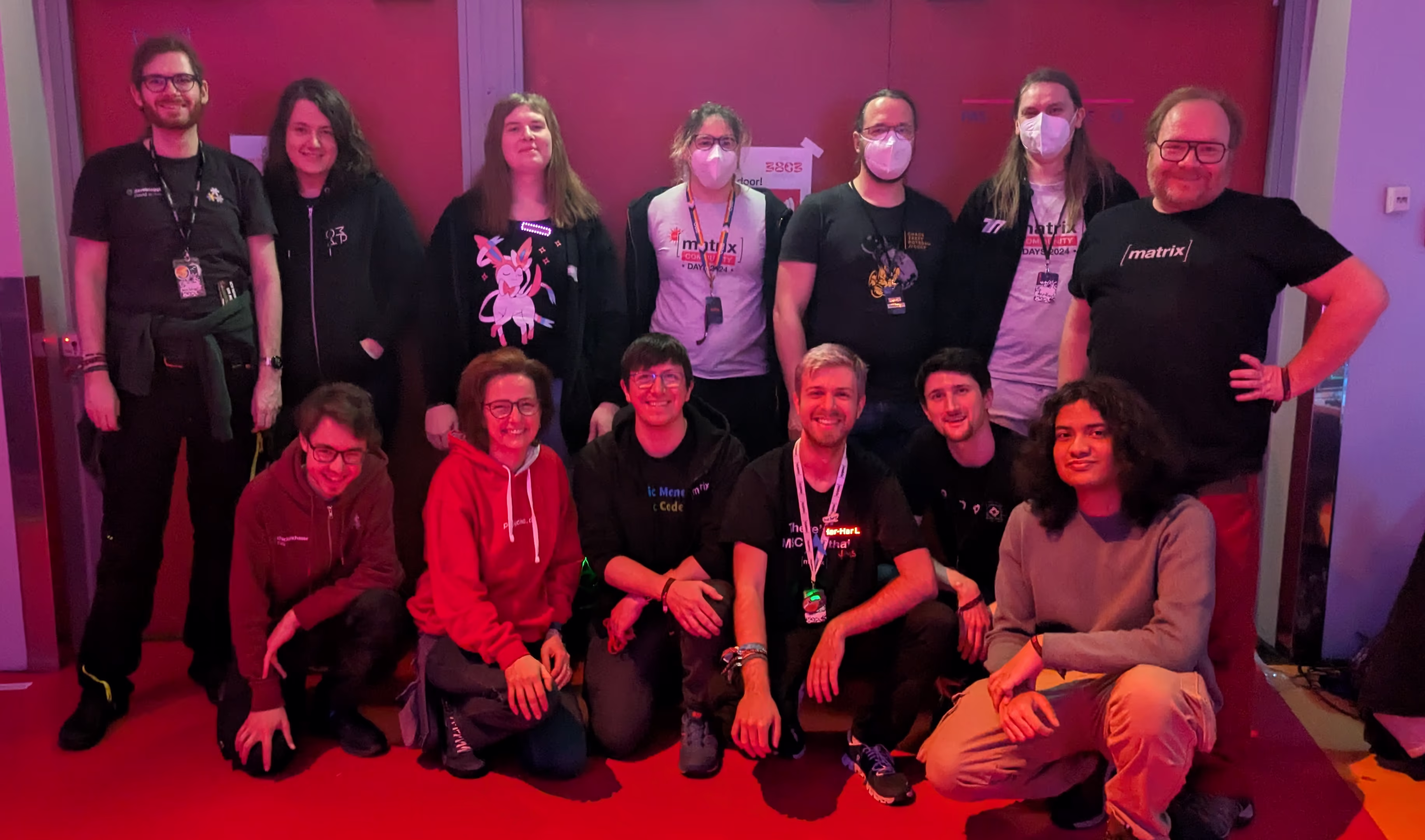 Dear TWIM, I'm writing you from the train back home after having visited 38C3 in Hamburg, the 38th edition of Chaos Communication Congress by the German Chaos Computer Club. Like yesteryear, #community-events:matrix.org organised the matrix community assembly there; you can imagine it as a kind of crossover of the Matrix #fosdem-2025-barcamp:matrix.org booth and a workshop area. We offered some "office hours" for people but many also dropped by around the clock with their questions, to get some of the official Matrix.org hoodies or T-shirts we could offer (thanks Thib for making this possible!), or simply to celebrate and socialise. We had a small assembly project driven by Nico who brought the materials to build an LED cube which once set up visitors could control through Matrix chat commands. As a small game, we hid small plastic rabbits around the whole congress center, which attendees could find and bring back to us to receive our wonderful assembly badge designed by Nadine. We also offered 2 workshops, one being another instance of Tune Your Chat, a project to collect all the neat small tips and tricks to tweak your Matrix experience, and for the other we were joined for a discussion by the creators of the "Standardised Messenger Audit – Frontend" catalog from the office of the German Federal Commissioner for Data Protection and Freedom of Information, published earlier this year. And of course we also took another group photo! If you are interested in joining us next time or for one of the many events we visit in the meantime, you can join #chaosevents:matrix.org specifically for appearances at CCC events or #community-events:matrix.org for even more.